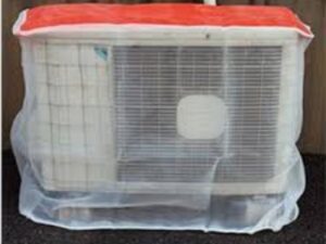 →使用中の室外機も養生しますが、通気できるように工夫して施工します。冷暖房の使用は基本OKです!